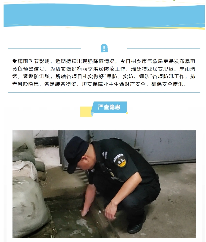 瑞源物業(yè)防汛動(dòng)態(tài)|防汛備汛不松懈,牢筑防汛“安全堤”